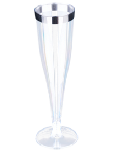 SIZE : 4.5OZ/6.5OZ MATERIAL : PS WIEGHT : 12G/18G DESC : PLASTIC CHAPANGNE FLUTE CF450 CLEAR+SLIVER RIM
