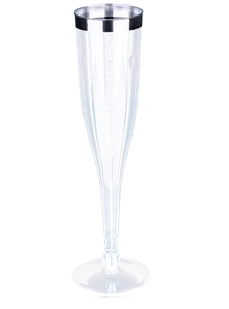 SIZE : 4.5OZ/6.5OZ MATERIAL : PS WIEGHT : 12G/18G DESC : PLASTIC CHAPANGNE FLUTE CF4511 SILVER RIM+SLIVER GLITTER